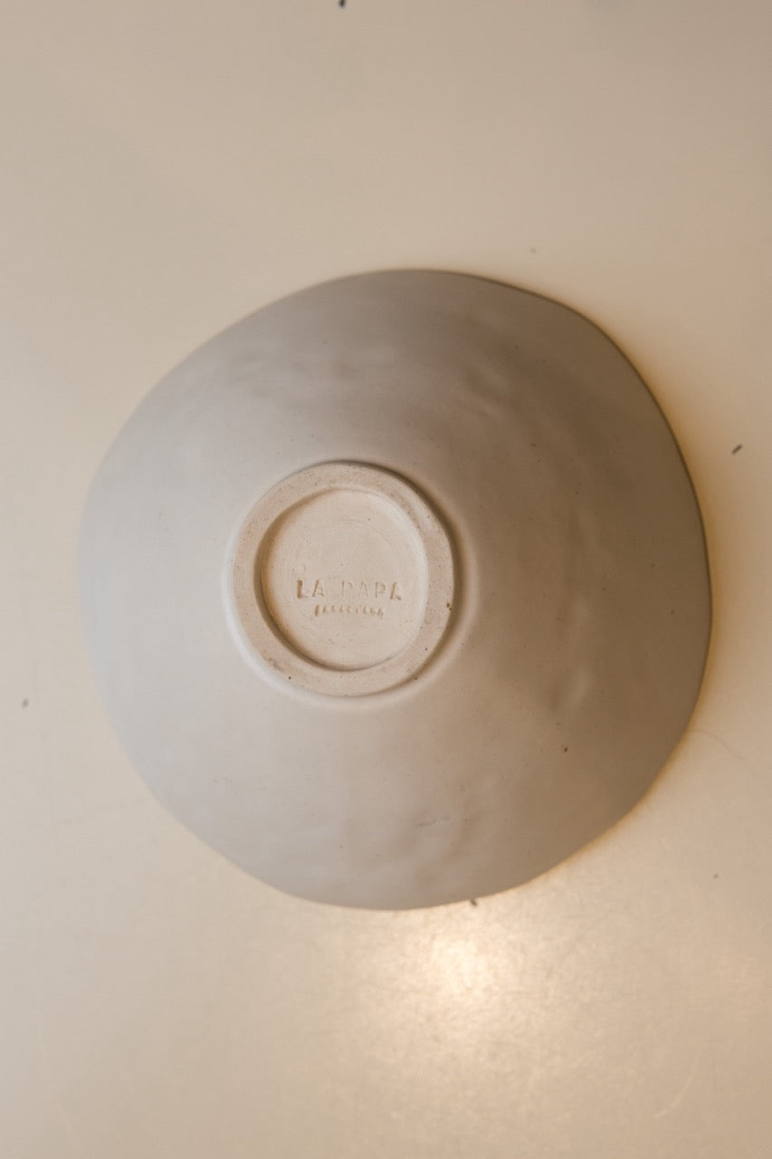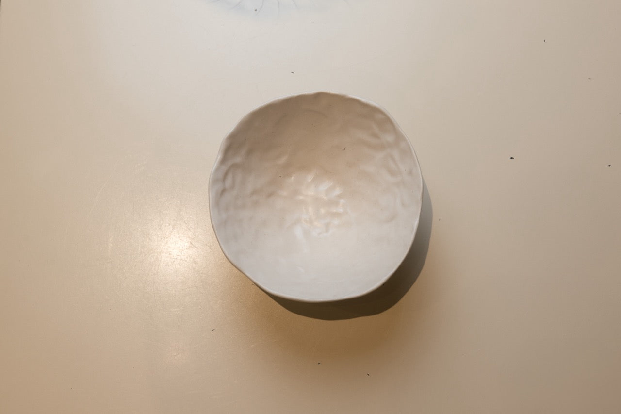 White flexible stoneware. Slab & pinch method. Partially glazed, Made by hand.